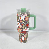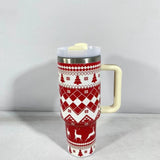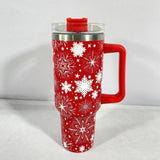 Festive Christmas Tumbler with Handle, Lid & Straw β Large Stainless Steel Travel Mug