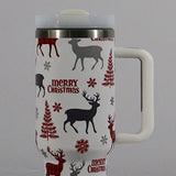 π Festive Christmas Tumbler with Handle, Lid & Straw β Large Stainless Steel Travel Mug π